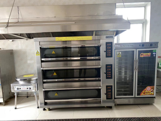 烘焙实训室面积约200平方米,可满足30名员工同时使用。内设备配置齐全,拥有多媒体教学设备、不锈钢柜式案板、烤箱、冷冻箱、冷藏柜、搅面机、奶油搅拌机等操作设备。